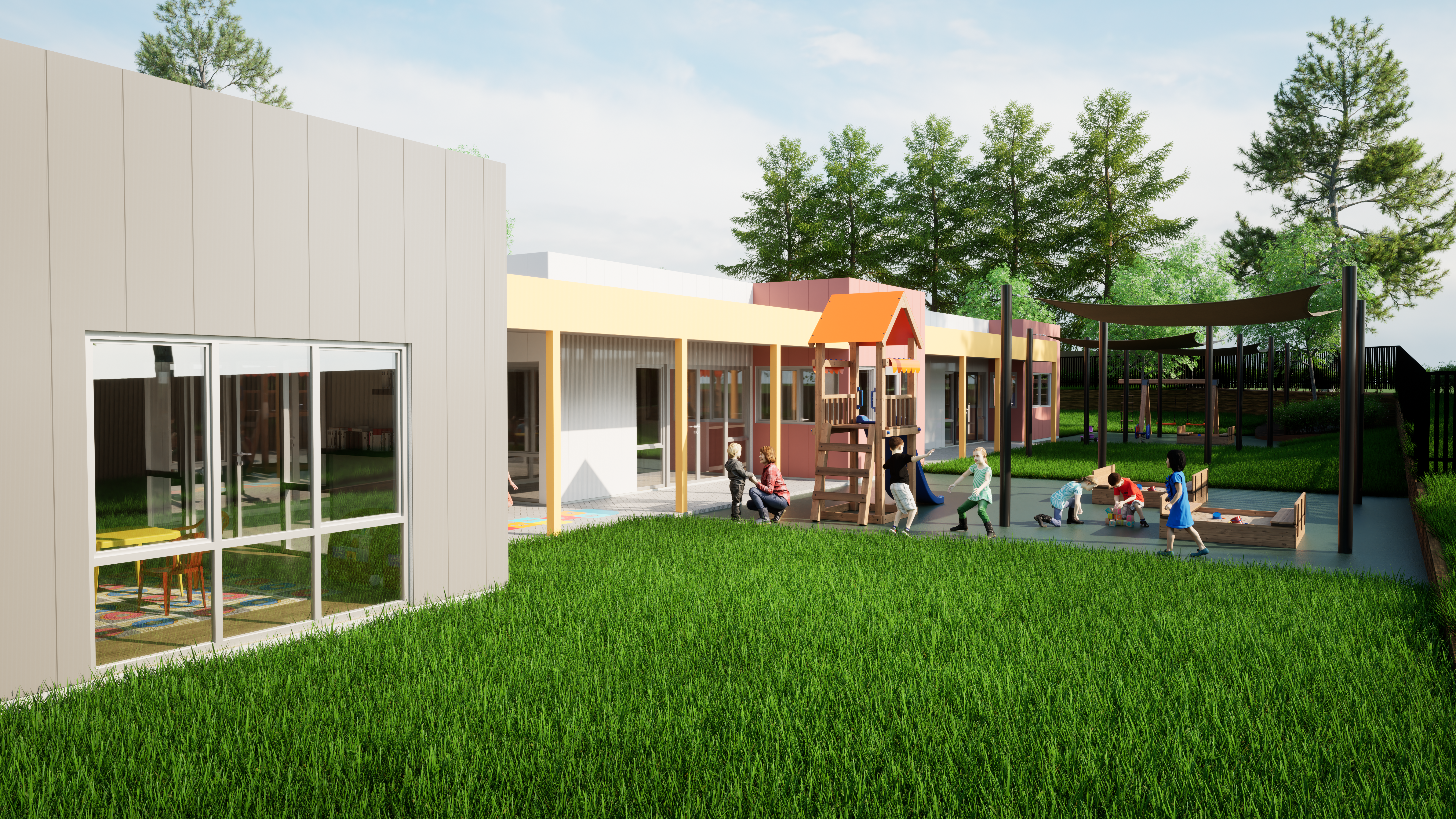 - Permit-approved 106-place single-level childcare centre