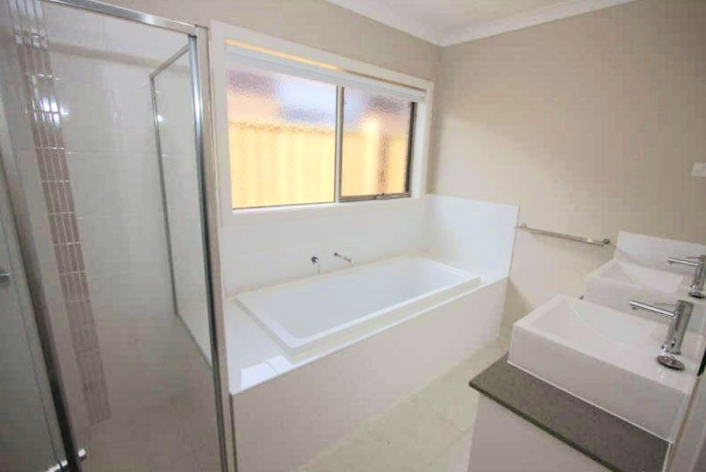 Consisting of 4 spacious bedrooms all with built-in robes, plus study, Master with Ensuite which has double sink to vanity unit, bathroom with separate bath and shower, double sinks to vanity unit; toilet is separate to bathroom, internal laundry, lounge room, a modern kitchen with skylight, heaps of storage cupboards, bench space and stainless steel appliances – gas cooker and electric stove and a dishwasher plus split system and study nook. Ducted Heating throughout. Insect screens are also included in the property as well as internal access from the double garage.